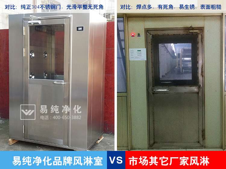 另一主要材質不是不銹鋼,不銹鋼有多個各類,目前凈化、醫藥行業主要應用304 2B型不銹鋼材質,這種不銹鋼采用含鎳為9個以上的不銹鋼制作,不容易生銹,耐腐蝕。但市場上很多廠家會采用201不銹鋼,這個價格與304不銹鋼價格相差一倍以上,要厚度上很多小廠家也會采用0.8-1.0的厚度,同樣是厚度和強度不夠。易純公司一般都是采用1.2mm不銹鋼制作,而且保證純304不銹鋼制作。