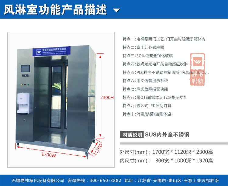 技術(shù)優(yōu)勢:采用微電腦控制,智能感應(yīng)消毒,無人值守模式,消毒時間可調(diào),單向和雙向消毒,電子門禁功能和溫度監(jiān)控消毒室供用戶選擇。