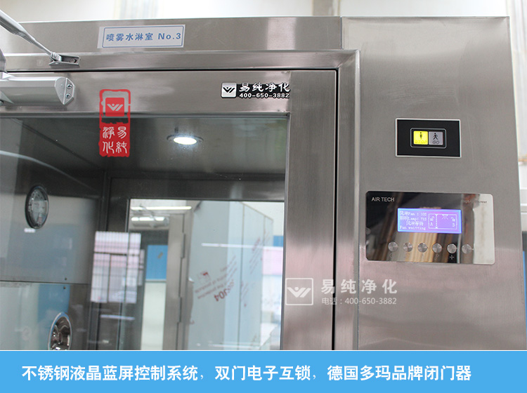 水淋風(fēng)淋一體機(jī)工作流程:1、人員進(jìn)入,感應(yīng)啟動(dòng)噴霧水淋,時(shí)間可調(diào);2、水淋吹完進(jìn)入等待緩沖時(shí)間,時(shí)間可調(diào)味;3、緩沖時(shí)間到后開始啟動(dòng)風(fēng)淋,風(fēng)淋時(shí)間可調(diào);在水淋和噴淋過程中,雙門全程聯(lián)鎖無法打開,保證人員進(jìn)行強(qiáng)制吹淋。同時(shí)為防止突發(fā)情況發(fā)生下人員緊急逃生,水淋機(jī)內(nèi)部設(shè)置了急停按鈕,可用于人員緊急逃生之用。