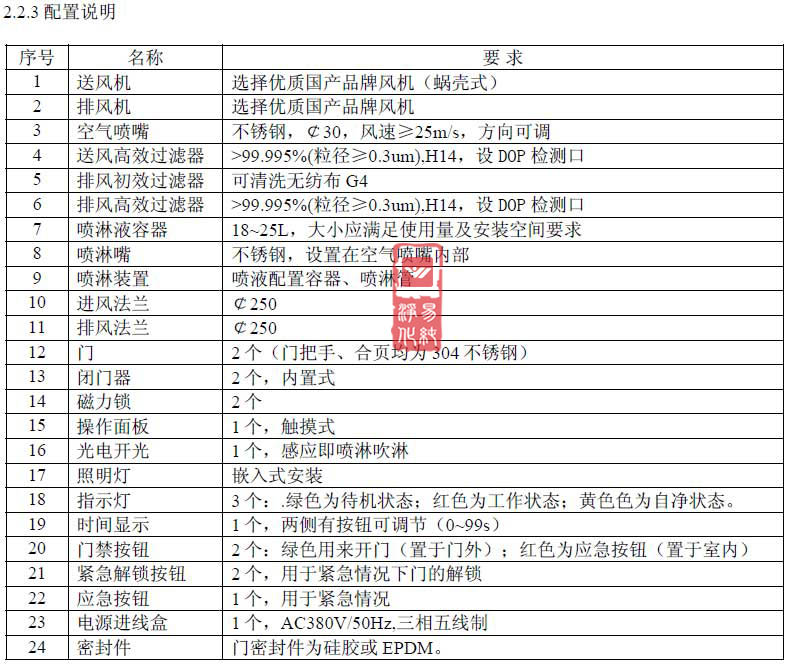 3.4采用壓縮空氣為動(dòng)力源;水淋室配潔凈照明燈,使照度達(dá)到400勒克斯。