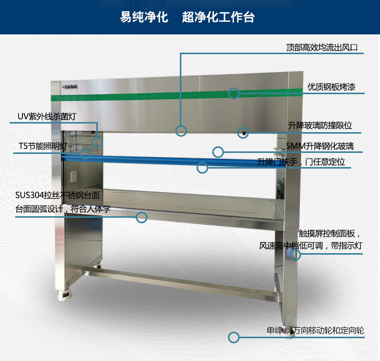 安全可靠的保障措施: 嚴格按照國際電氣安全標準規范設計,確保產品具有多重安全保護措施,采用柔光型的照明燈與紫外線殺菌燈控制單獨控制,同時需要注意的是紫外線殺菌只能在工作前開殺菌,在人工作時不允許開紫外線殺菌燈,避免紫外線殺菌燈對人體皮膚造成灼傷。
